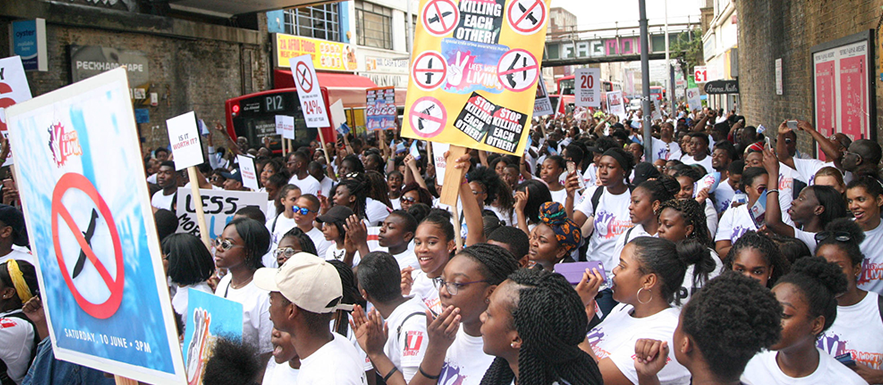 The streets of Catford and Peckham saw a huge, life affirming march on Saturday 10 June, when the Victory Youth Group (VYG) turned out in force to raise awareness of peer on peer knife crime. This is a fast growing problem among the capital’s young people, with knife attacks involving injuries to victims up 20% to 4,415 in 2016/17.