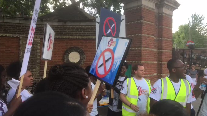 “Ayer se realizó una marcha enérgica contra las armas blancas y las armas de fuego desde Finsbury Park hasta Wood Green. Cientos de jóvenes liderando el camino. Organizado por @OfficialVYG Gracias @ RyanA1shot por invitarme.”