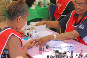 Nossa seção de saúde e estilo de vida era administrada pelo grupo de Atendimento ao Paciente, fornecendo bebidas saudáveis e realizando verificações de pressão arterial para os que desejassem.