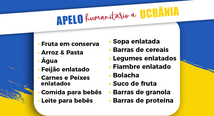 Mas como a situação na Ucrânia ainda é devastadora, ainda há necessidade de ajuda. Por esse motivo, teremos mais um apelo humanitário para recolher produtos que ajudem o povo da Ucrânia que no momento não tem a possibilidade de sair com segurança e atender suas necessidades básicas.