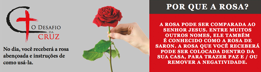 Na Sexta-Feira Santa, você está convidado a participar do Desafio da Cruz. Neste evento, você envergonhará publicamente a negatividade que trás angústia, sofrimento e problemas para a sua vida. Você tem todos os motivos para estar farto destas situações, pois elas são responsáveis pelos conflitos que você tem com seus familiares, seu parceiro(a) e o ressentimento que você tem em relação a si mesmo, e também pelas dificuldades financeiras, doenças incuráveis e vícios.