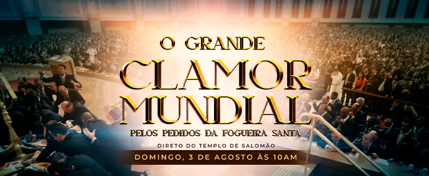 Neste domingo, 3 de agosto, às 10am, na Catedral dos Milagres ou na Igreja Universal mais perto de você, participaremos do Grande Clamor Mundial por Justiça.